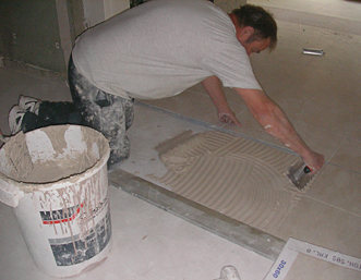 Afficher le revêtement et maroufler soigneusement pour écraser les sillons de colle.