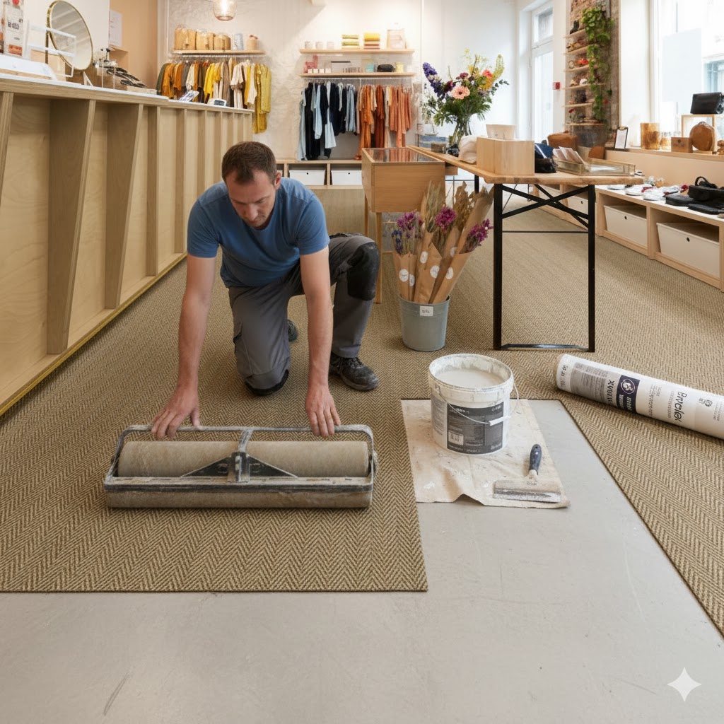 Gommage (Crucial) : Laisser gommer la colle 5 à 10 minutes avant d’afficher le revêtement.