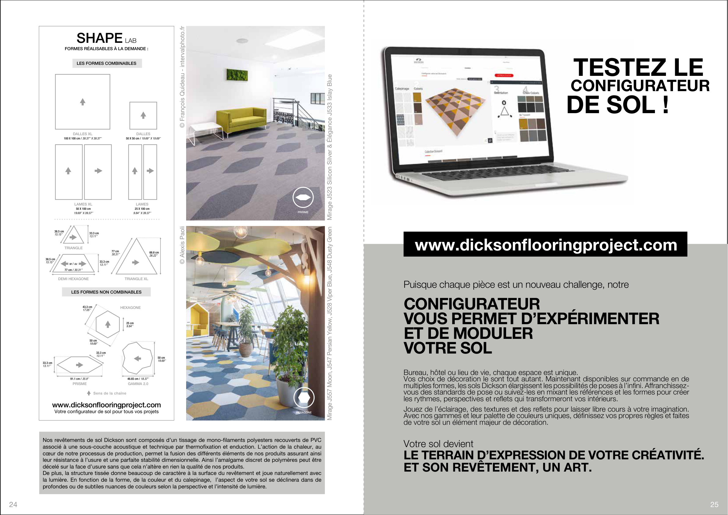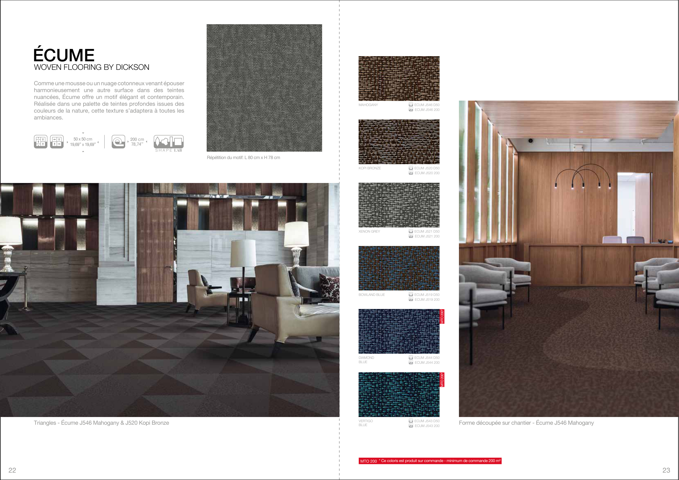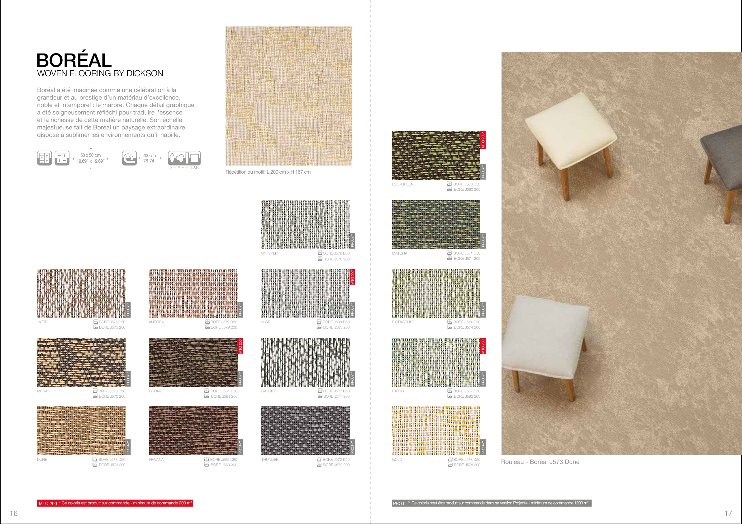 Certaines références sont produites à la demande pour un minimum de 200 m2 ( cf. Made to Order: J541 / J543 / J544 / J547 / J551 / J552 / J560/ J561 / J567 / J568 / J580 /