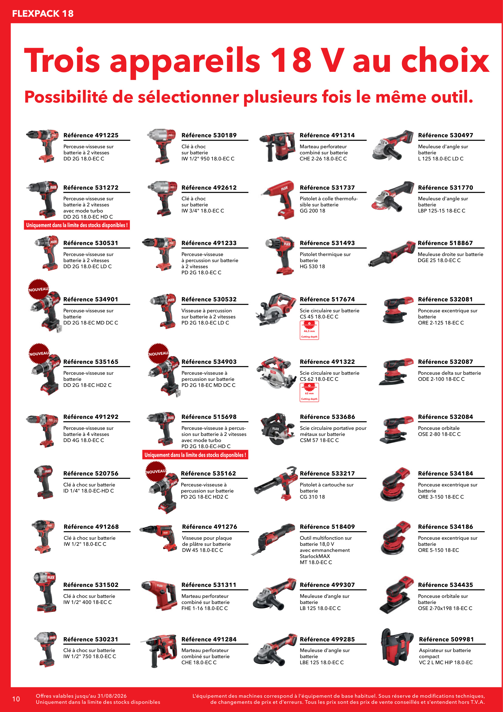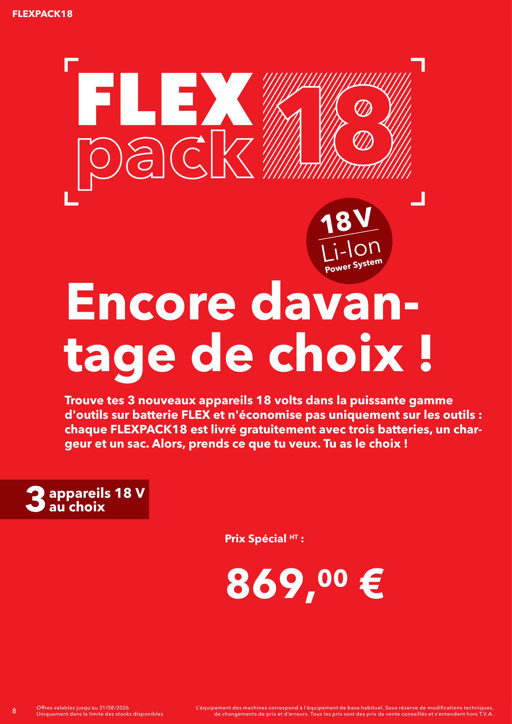 Avec le FLEXPACK18, vous ne payez pas pour des outils dont vous n’avez pas l’usage. Le concept est simple : vous choisissez librement 3 machines dans la gamme 18V, et nous vous fournissons l’énergie pour les faire tourner. C’est l’opportunité idéale de s’équiper avec le système 18V Li-Ion Power System tout en réalisant une économie importante.