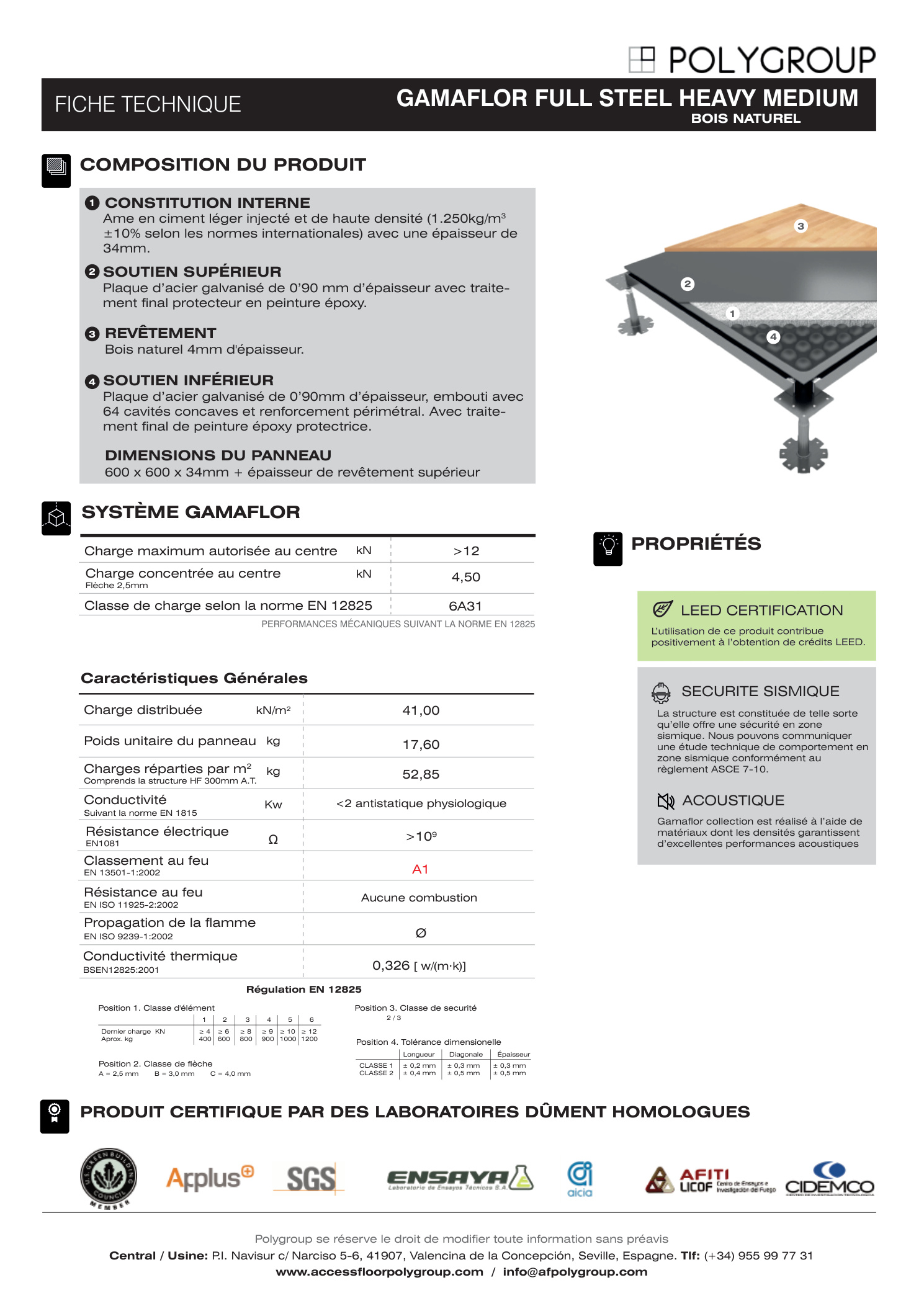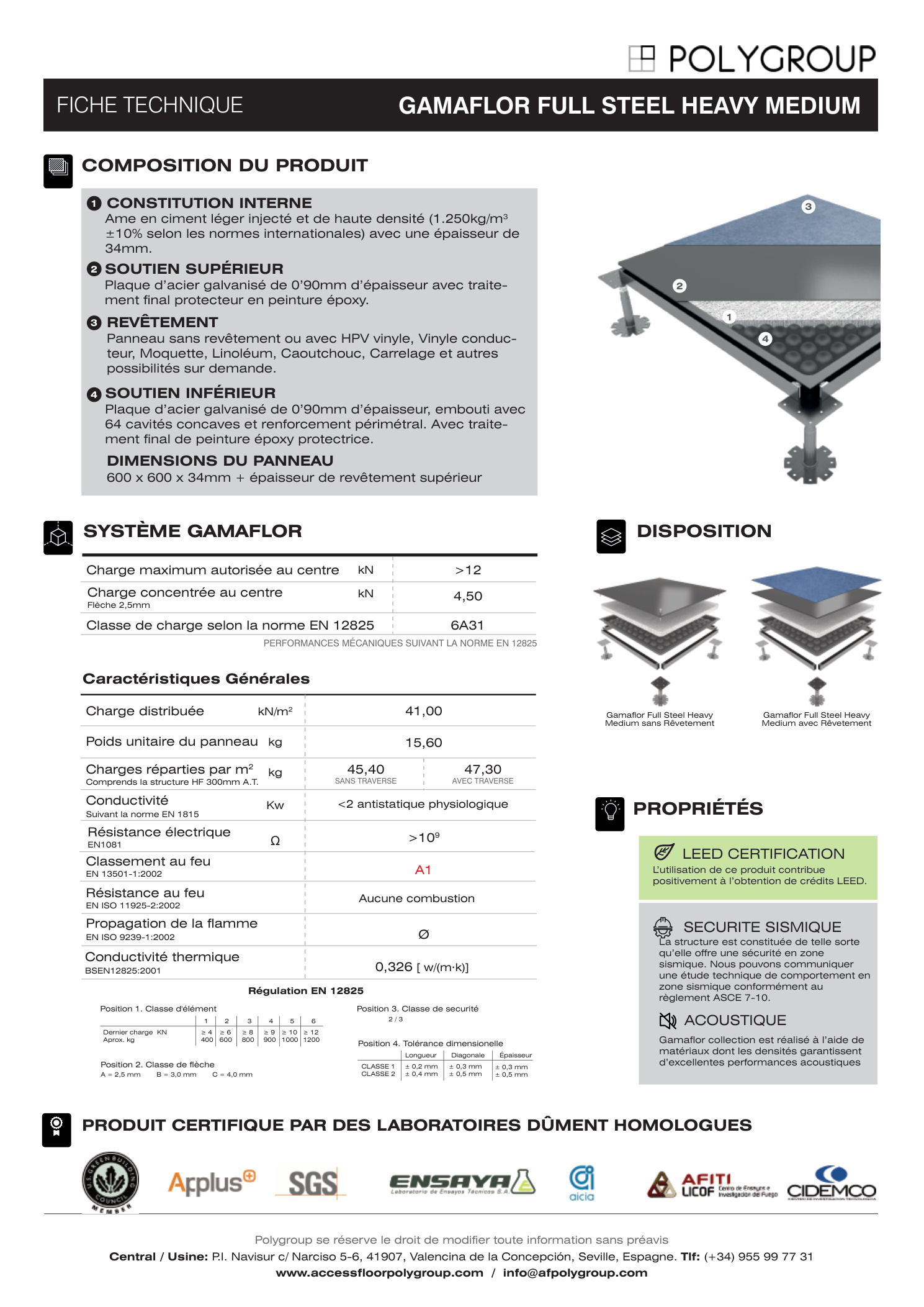 Les dalles du système GAMAFLOR FULL STEEL sont constituées de :