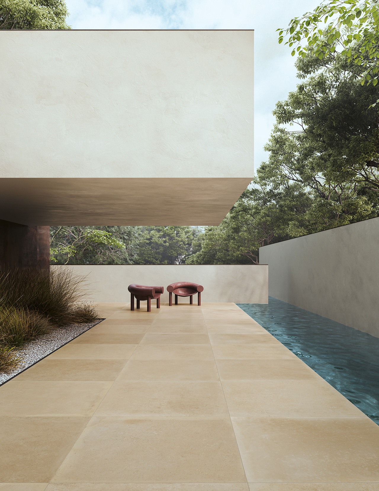 Grès cérame pleine masse – finition mate naturelle, effet terre cuite moderne.