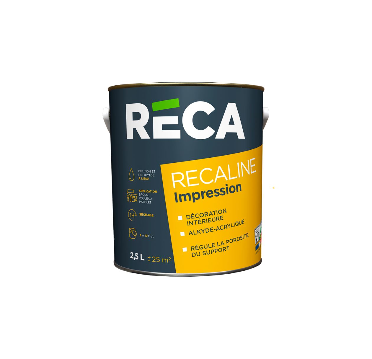 RECALINE IMPRESSION est une impression acrylique en phase aqueuse, spécialement conçue pour la préparation des supports intérieurs et extérieurs avant mise en peinture. Elle pénètre les fonds poreux, friables ou farinants, les fixe en profondeur et régule l’absorption du support, garantissant une adhérence optimale des couches de finition.