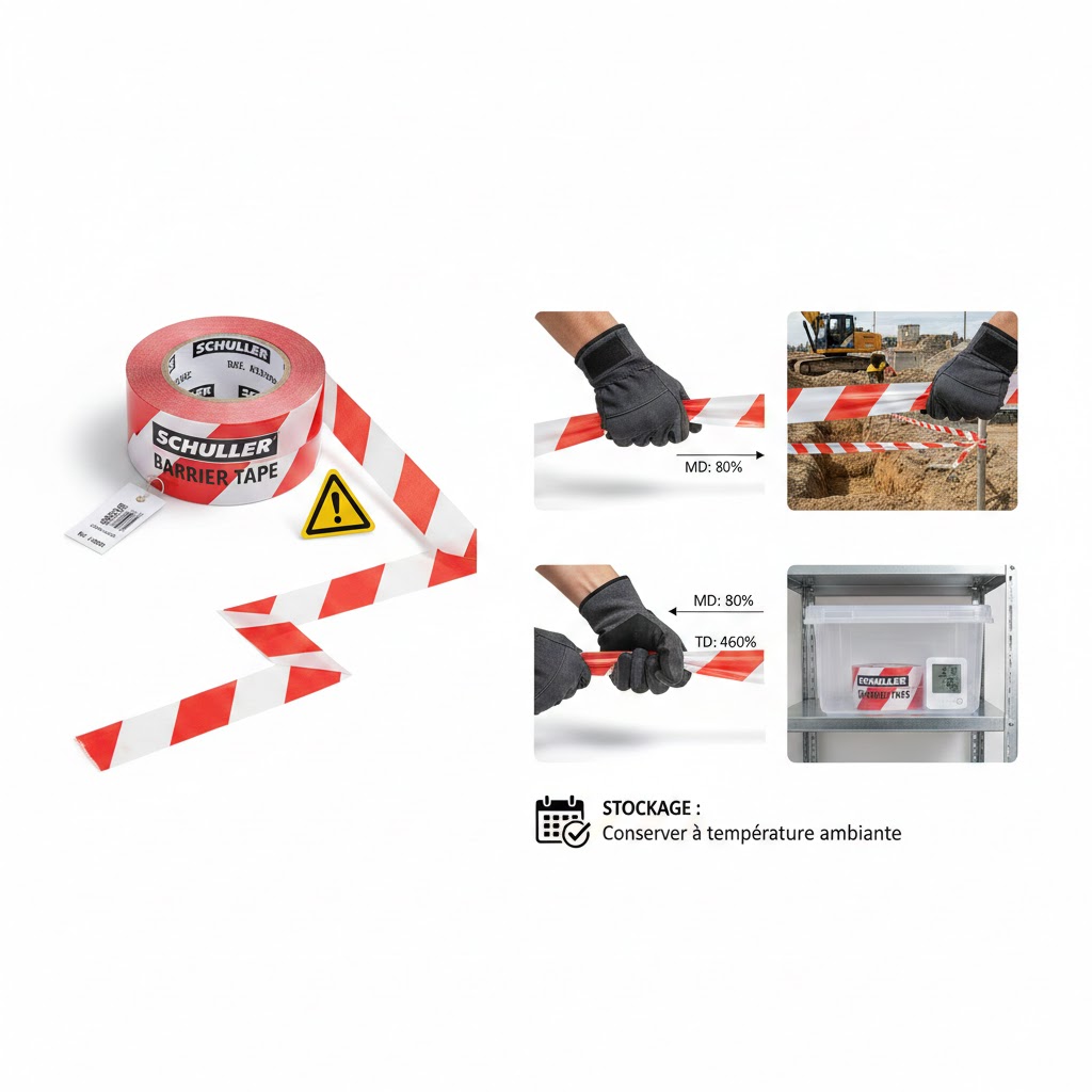 utilisé pour le marquage et la délimitation des zones de danger et des obstacles, tant à l’intérieur qu’à l’extérieur.
