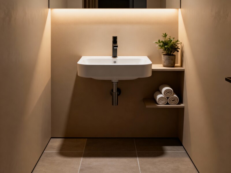 ✔ Douche = carrelage, béton ciré ou panneau, pas de peinture directe